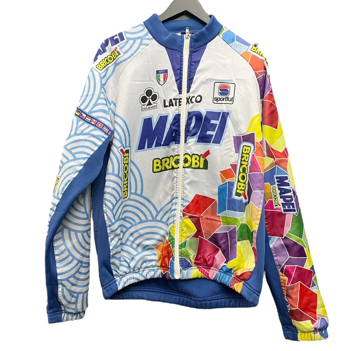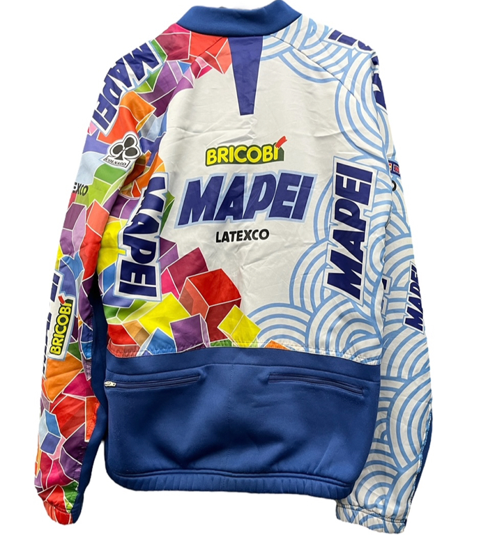 Retro 1998 Mapei jacket in size X large, with part of the zip missing on the rear pocket and a small historic repair near the collar, hence why it is in the clearance section.
