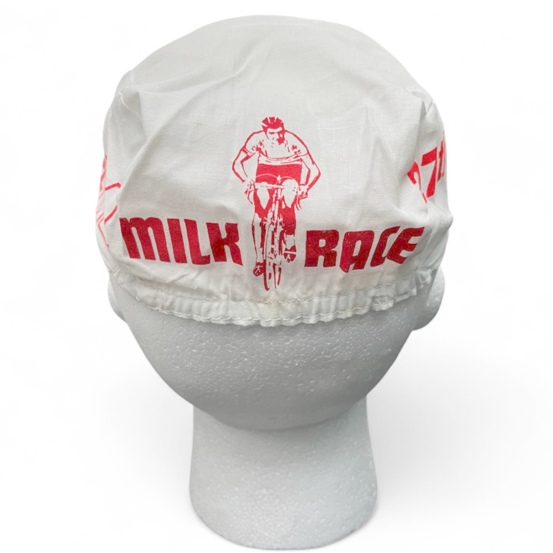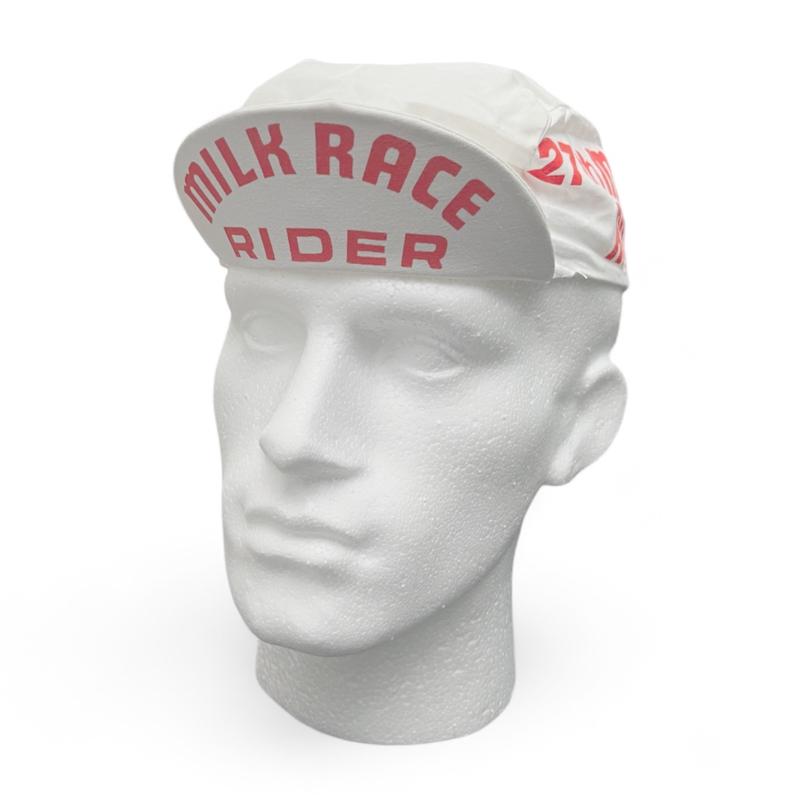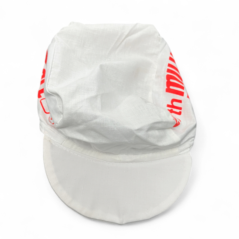NOS 1984 milk race rider cap, never been worn but has some marks due to storage, one size.