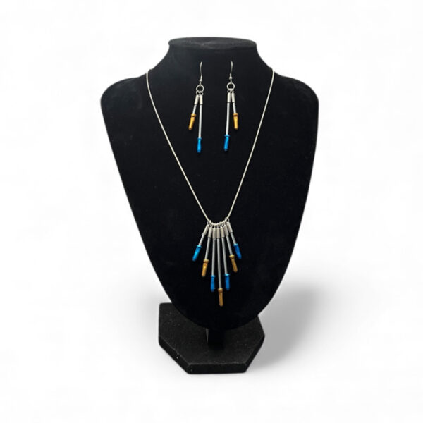 Recycled Bicycle Brake Cable Necklace Red, Gold & Green