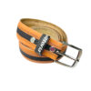 The width of the belt is approx 3cm, 1.25″ and has been cut and punched to fit a 30″-36″ waist.
