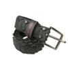 The width of the belt is approx 4cm, 1.4″ and has been cut and punched to fit a 32″-38″ waist.