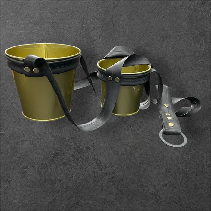 Made using inner tube and a cassette cog spacer the hanging loop, this planter is great for indoor use. Complete with 2 metal pots, the larger is 14cm diameter and the smaller 10.5cm in diameter.