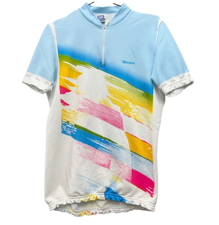 1990’s Santini cycling jersey in size large, will fit up to a 42″ chest.