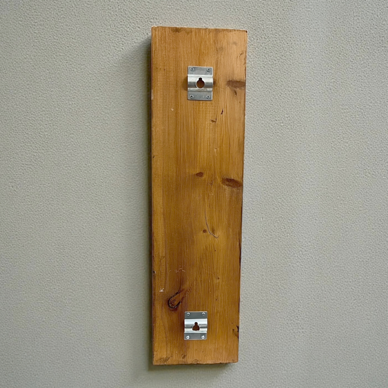 This wine rack is made from reclaimed wood and upcycled bicycle bidon cages and cassette cogs, suitable for regular straight wine bottles , not suitable for Prosecco bottles. Requires two screws to attach to the wall.