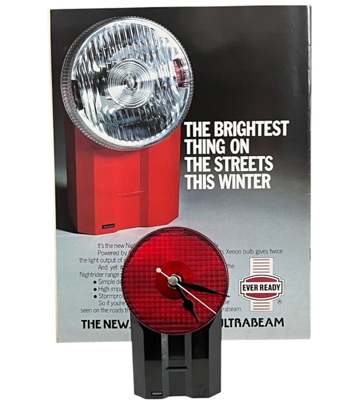This clock is made using a retro bicycle light, height is aprox 15cm.