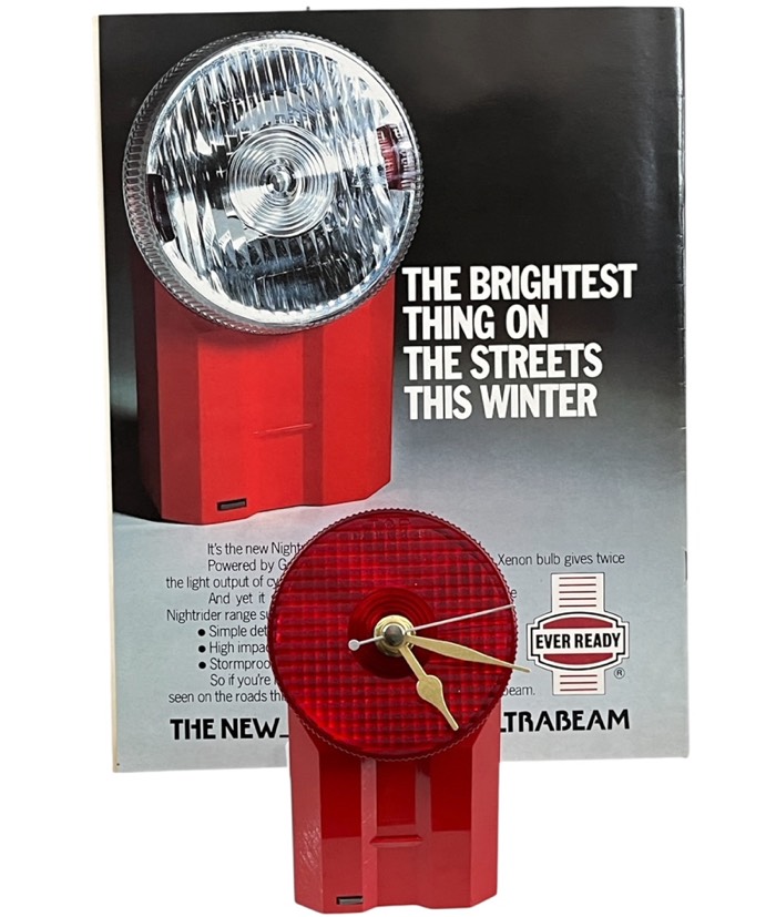 This clock is made using a retro bicycle light, height is aprox 15cm.