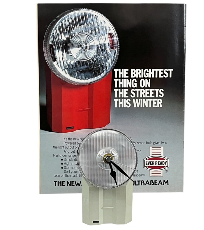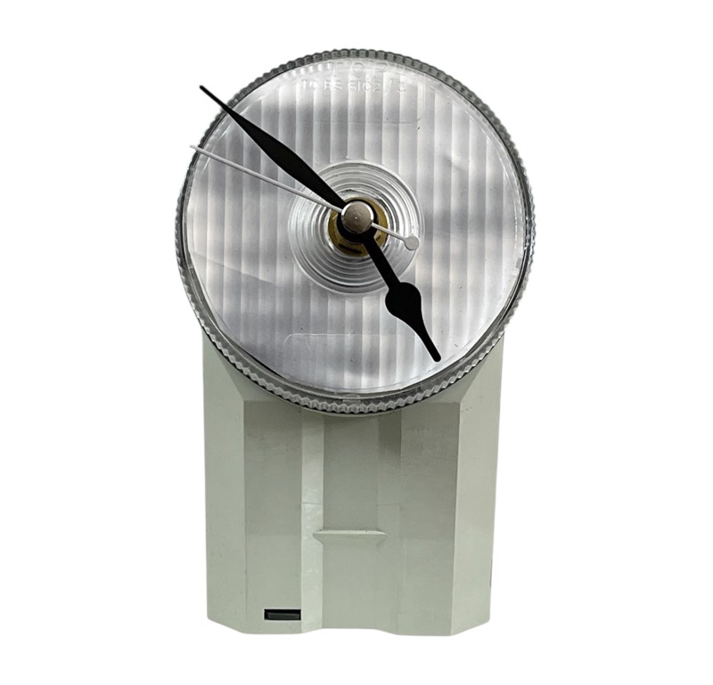 This clock is made using a retro bicycle light, height is aprox 15cm.
