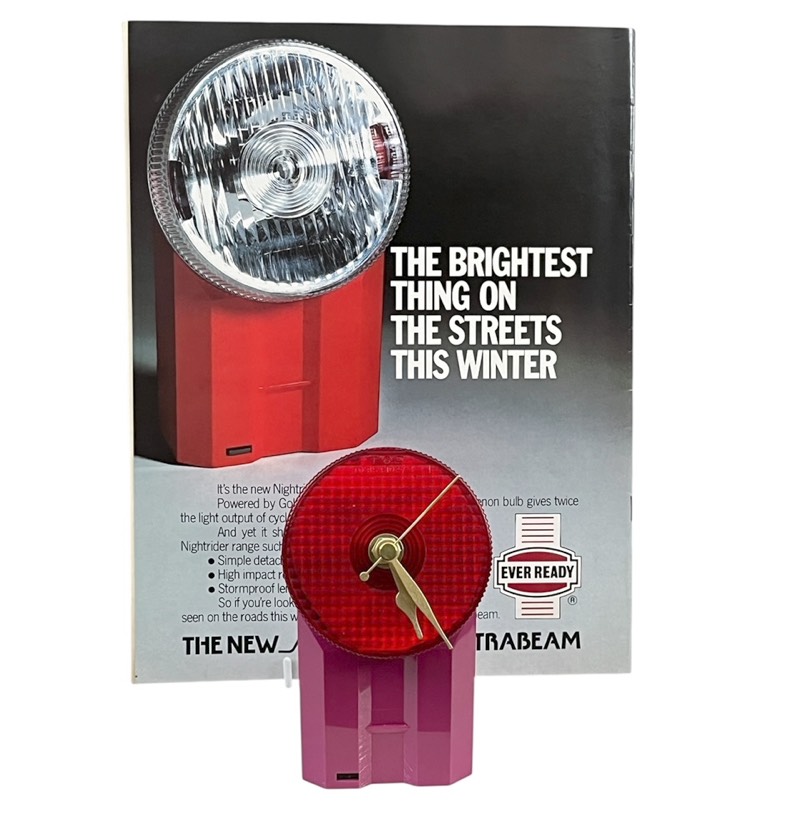 This clock is made using a retro bicycle light, height is aprox 15cm.